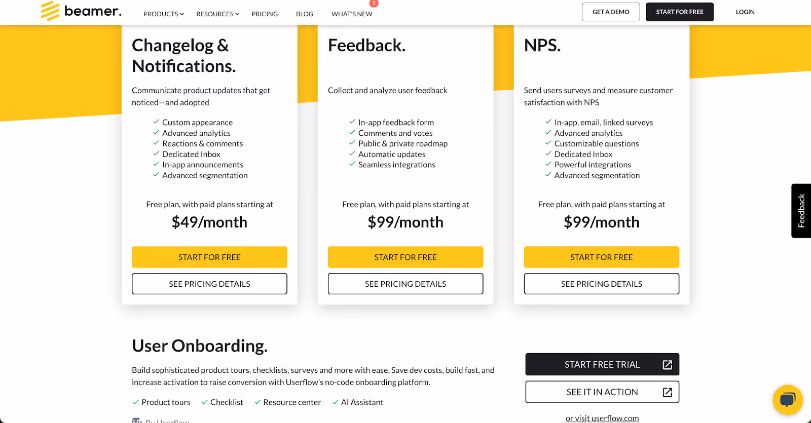 Keep in mind that Beamer also has Userflow for onboarding, so both of these tools require a commitment.