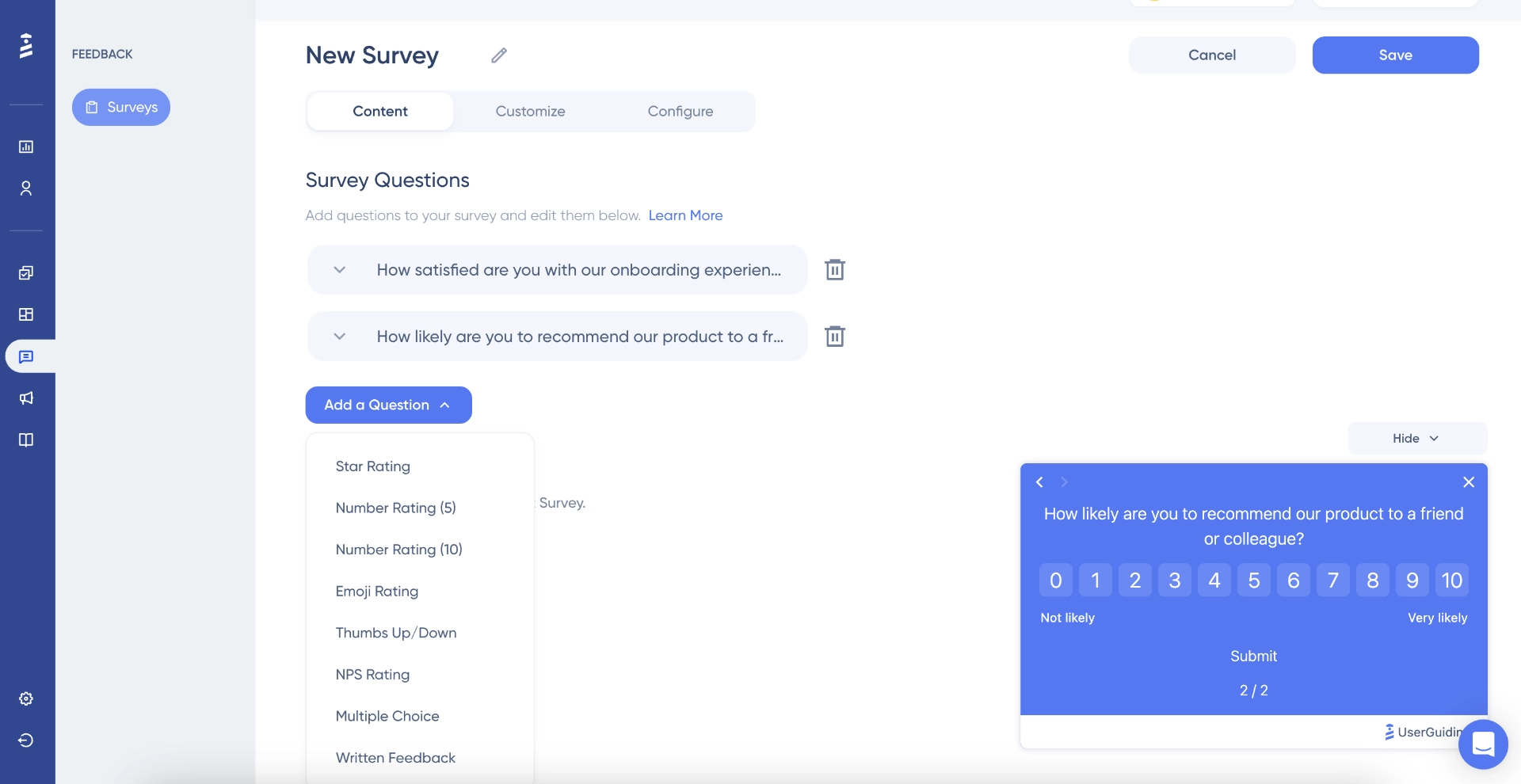 Let's see how you can use UserGuiding to gather user feedback right where your users are: your product!