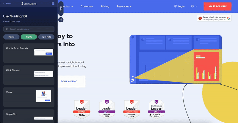 Let's put Mailchimp aside for now, as we'll get to it later; and see how UserGuiding can help you create personalized experiences.