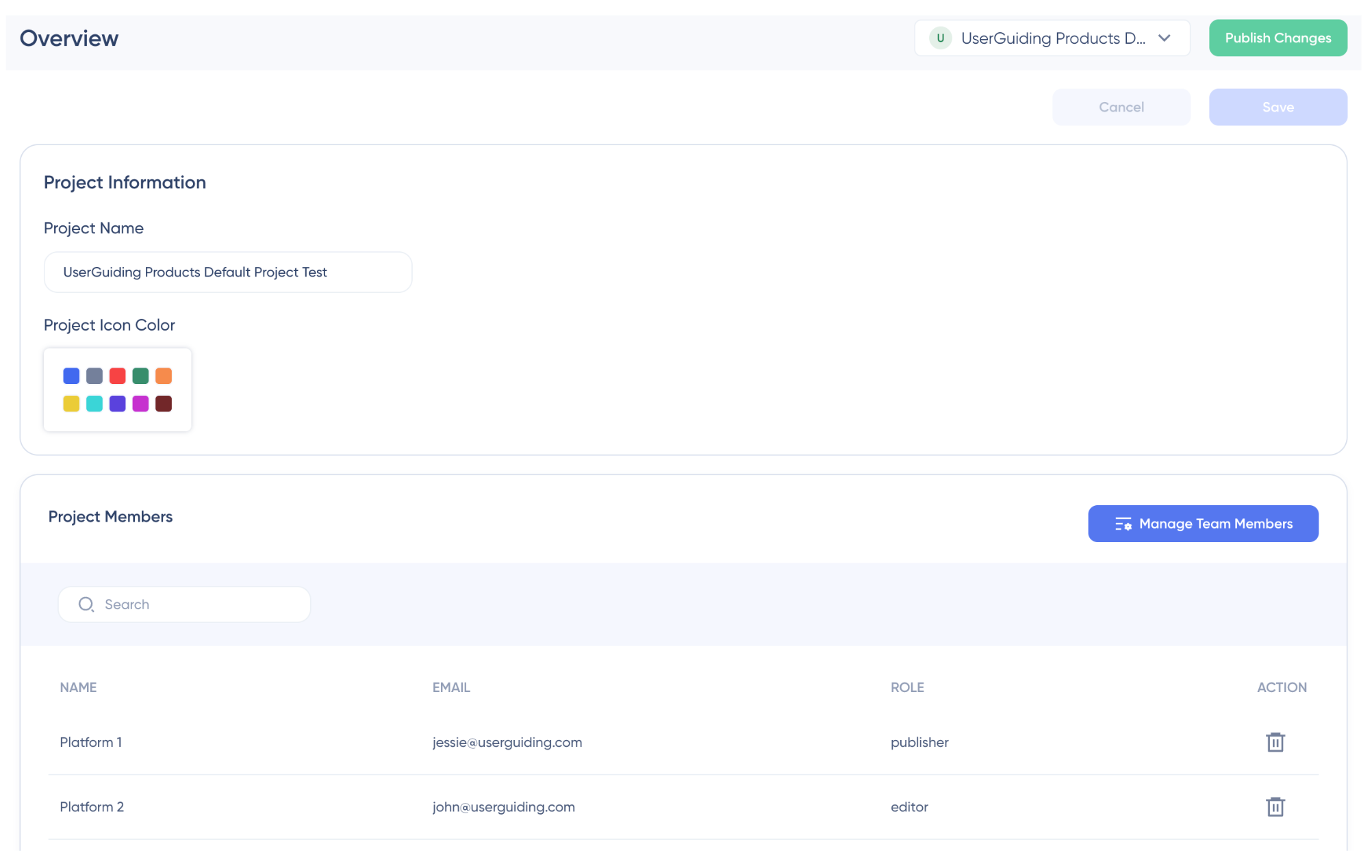 Managing onboarding across multiple products or sub-domains requires a structured approach where each product has its own dedicated workspace. This allows you to separate onboarding flows, analytics, and user data while still managing everything from a central system. With this setup, you can tailor experiences to each product’s use case without mixing content or insights. For all of this, you need onboarding tools with multiple project management capabilities, which not all platforms offer. For example, UserGuiding enables you to manage multiple projects under one account, so each product can have its own onboarding logic while teams collaborate centrally.