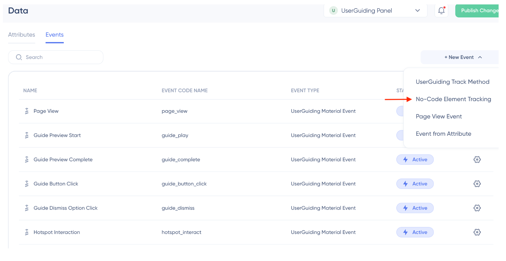 [UserGuiding’s no-code event tracking.]