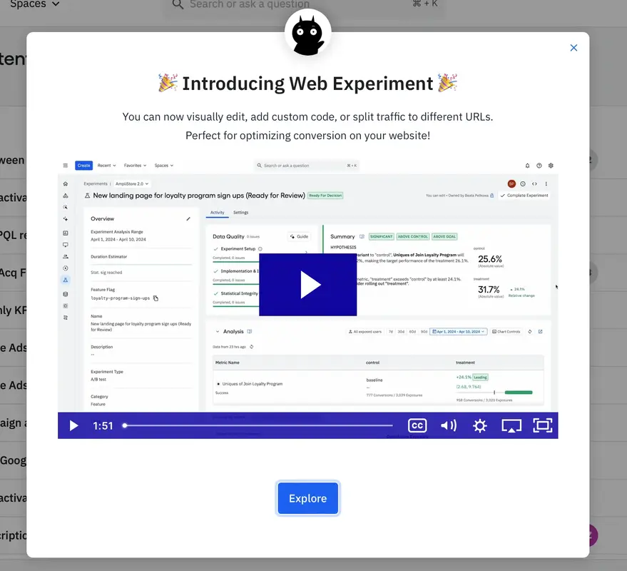 Then, an announcement modal based on users' choices pops up to continue the product onboarding process.