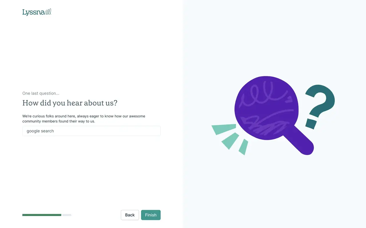 The last question Lyssna asks the user is to learn where the user heard about the platform, which might help the marketing team discover a new promotion channel or re-invest in an older one.