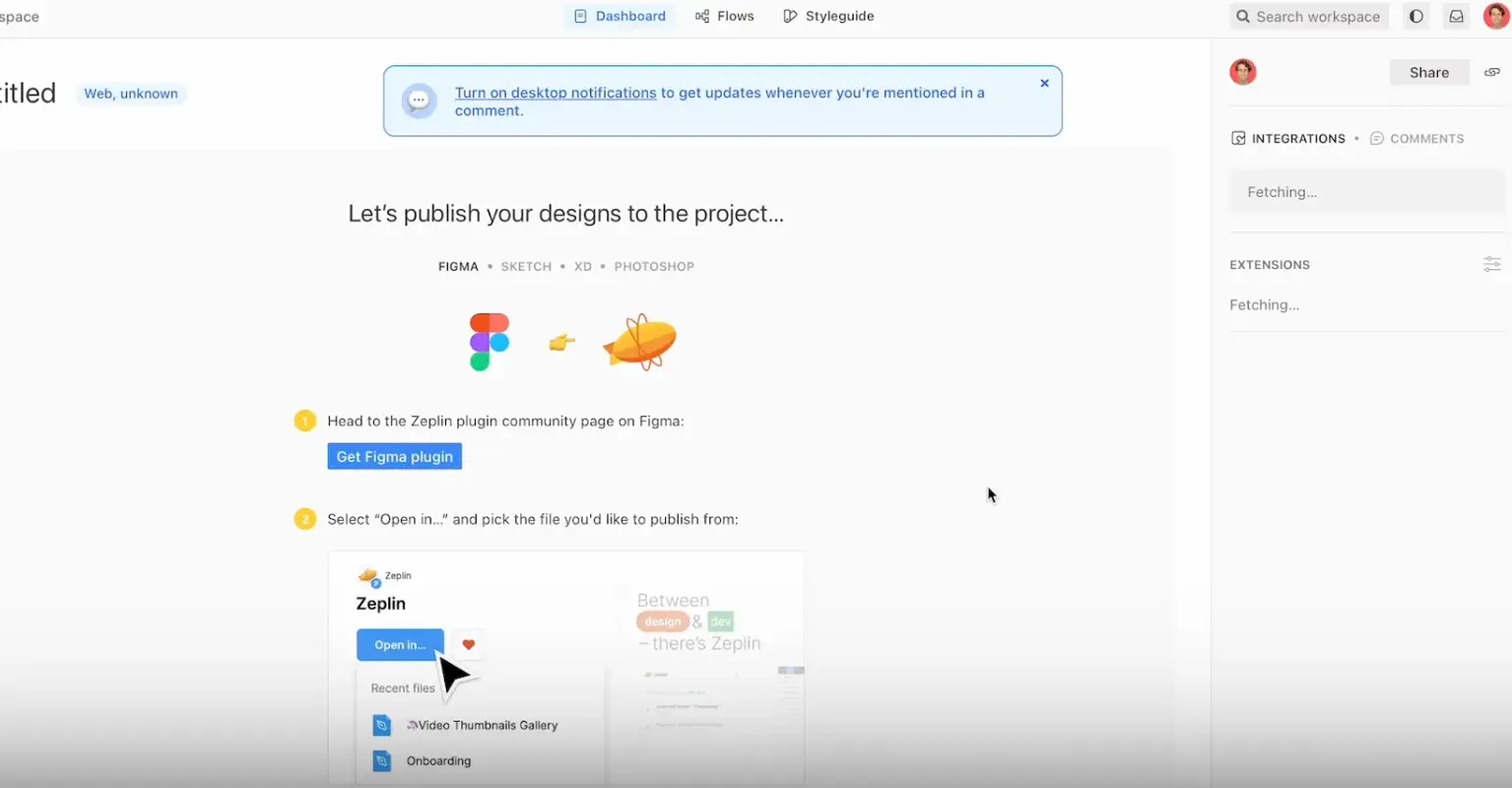 Zeplin benefits from a checklist-alike page as a part of product onboarding.