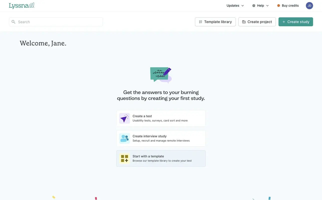 After the user finishes the signing up process and answers all the welcome survey questions, Lyssna throws a package of confetti to celebrate the successful process.