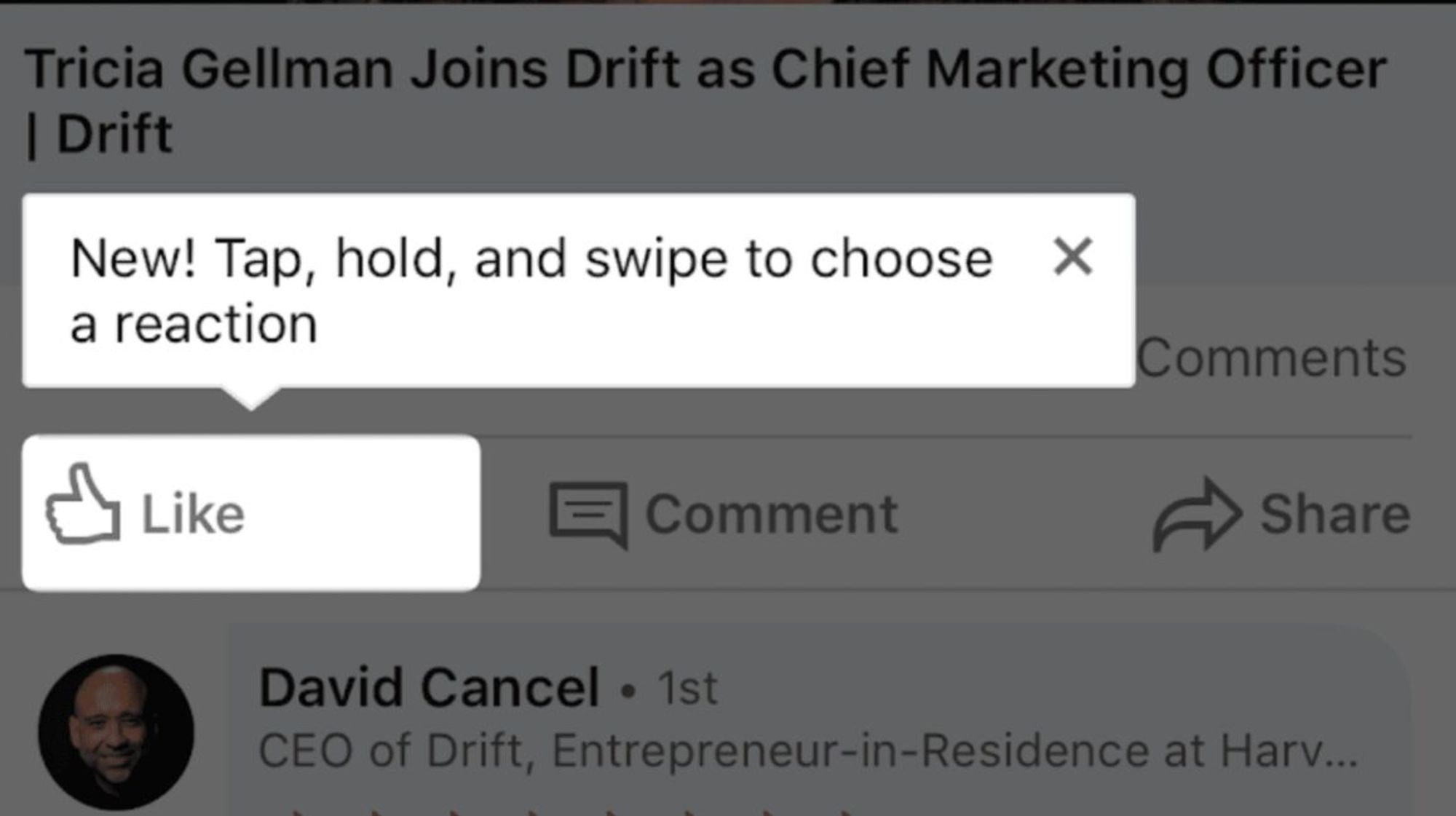 🛎️ Like LinkedIn does with this feature announcement tooltip: