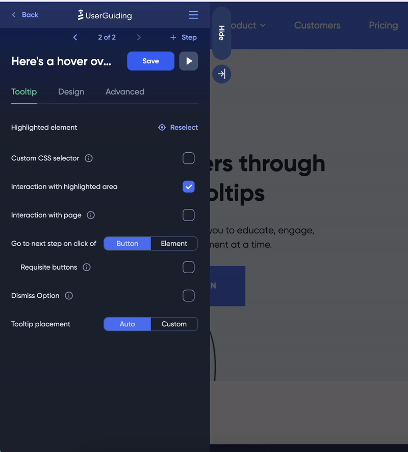 With UserGuiding, anyone can design and create code-free tooltips in a matter of minutes!