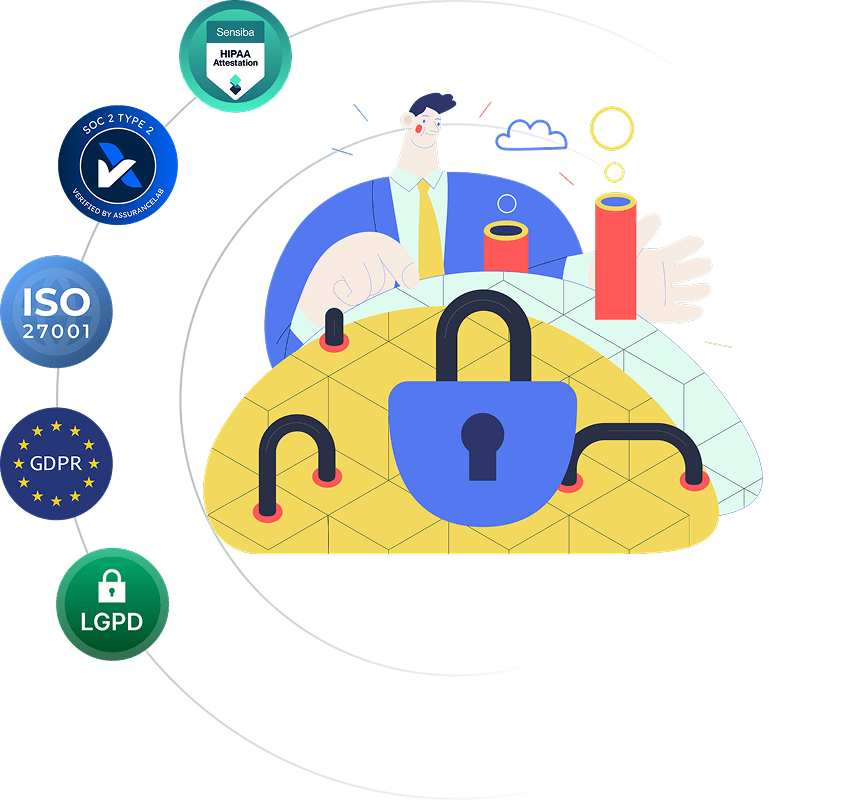 UserGuiding protège votre vie privée dans son intégralité, en garantissant la sécurité de vos données et la conformité à SOC 2 Type 2, RGPD, HIPAA, ISO 27001 et LGPD.
