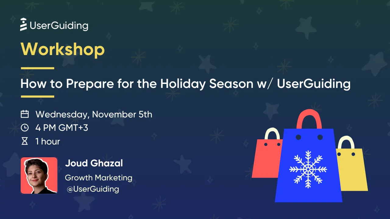 In this 45-minute workshop, Joud Ghazal will walk you through how to prepare and execute end-of-year campaigns inside your product using UserGuiding.